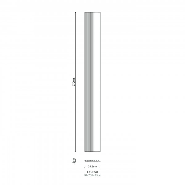 LAVENO seinapaneel 270 x 29,6 x 2cm on elegantne lamellmuster ruudukujulise detailiga, mis sobib ideaalselt kogu seinale või selle osale. Tänu oma ainulaadsele kujule saab paneeli vabalt paigutada, et see sobiks teie enda disaininägemusega. Vastupidavast polüuretaanist valmistatud paneel on mati viimistlusega ja 270 cm pikk. Selle pind on valmis värvimiseks mis tahes värviga, mis võimaldab täielikku isikupärastamist. LAVENO paneel on ka niiskuskindel, mistõttu on see ideaalne valik erinevatesse ruumidesse.